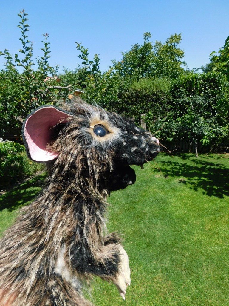 This little rascal was a bit of commissioned work. He’s a mix between a rod puppet, a table puppet and a hand puppet. His nose wiggles and he’s ready for his next big adventure! Many thanks to Julia Gerlach for her help with the pictures.